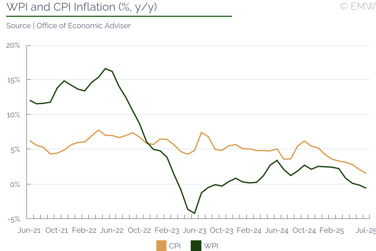 At its August meeting, the Reserve Bank of India's Monetary Policy Committee (MPC) kept the repo rate steady at 5.50%, following June's front-loaded 50bps reduction. The standing deposit facility (SDF) and marginal standing facility (MSF) were maintained at 5.25% and 5.75%, respectively. The decision was unanimous, underscoring the committee's view that policy transmission from earlier cuts is still unfolding. The RBI reiterated that while supporting growth remains a priority, any further easing will be gradual and data-contingent. Inflation Outlook The disinflation trend has deepened. CPI inflation dropped to 1.5% in July, edging down from 2.1% in June and marking the lowest reading in over six years. Food inflation stayed negative for a second consecutive month, with both rural and urban food prices declining, led by continued softness in vegetables, pulses, cereals, and dairy. A favorable monsoon and robust agricultural yields are reinforcing this trend. However, massive rainfall in key agriculture states risks the chances of strong farm output this year. The risk is contained currently but the RBI will track this before making further moves. In its August policy update, the RBI revised FY26 inflation forecasts lower to 3.0% (from 3.1% earlier), while cautioning that price pressures may firm in late FY26 as global energy prices stabilize and base effects fade. Growth Momentum India's Q1 FY26 GDP expanded by 7.8% y/y, up from from Q4 FY25's 7.4%. Sectoral momentum remains broad-based: construction surged 7.6%, public services rose 9.8%, agriculture expanded 3.7%, and private consumption grew 7%. High-frequency activity indicators remain resilient. The August manufacturing PMI print came in at 59.3, signaling robust demand across sectors. GST collections stayed buoyant at INR 1.86tn in August, supported by strong consumption. The government's recent personal tax relief measures and the GST reform are also expected to lift household purchasing power and underpin consumption through H2 2025. Overall, the RBI is likely to give more time for the cumulative 100bps easing to filter through before considering fresh action. External and Financial Conditions India's external balance remains stable. The current account posted a surplus of USD 2.4bn in Q1 FY26, helped by resilient services exports and a softer oil import bill. FX reserves stood at USD 694.5bn as of Aug 29, covering over 11 months of imports, despite intermittent intervention-driven drawdowns. System liquidity is in surplus, aided by the phased 100bps CRR reduction to 3% (effective November) and ongoing FX inflows. Cumulative RBI liquidity injections since January now total INR 9.8tn, keeping money market rates anchored. On the currency side, the INR has weakened modestly, trading at 87.6 per USD as of early September, pressured by widening goods trade deficits and higher imports from the US and China. External risks remain pronounced, with global tariff frictions intensifying and US trade policy toward India under review. President Trump's renewed warnings on penalising India's Russian crude imports, coupled with 50% duties, have added to market jitters. Near-term INR pressures are likely to persist. Conclusion Following 100bps of easing in early 2025, the RBI appears firmly in wait-and-watch mode. Inflation is running well below target, real rates are close to neutral, and growth remains healthy. However, risks from external headwinds, latent services inflation, and volatile trade dynamics counsel caution. Governor Malhotra has reiterated that future policy decisions will remain "calibrated and data-driven," suggesting a longer pause. We expect the RBI to hold rates through the October policy window, with scope for re-assessment in late FY26 if growth softens or disinflation runs deeper than the RBI's comfort zone. Further reading | |||||||||||||||||||||||||||||||||||||||||||||||||||||||||||||||||||||||||||||||||||||||||||||||||||||||||||||||||||||||||||||||||