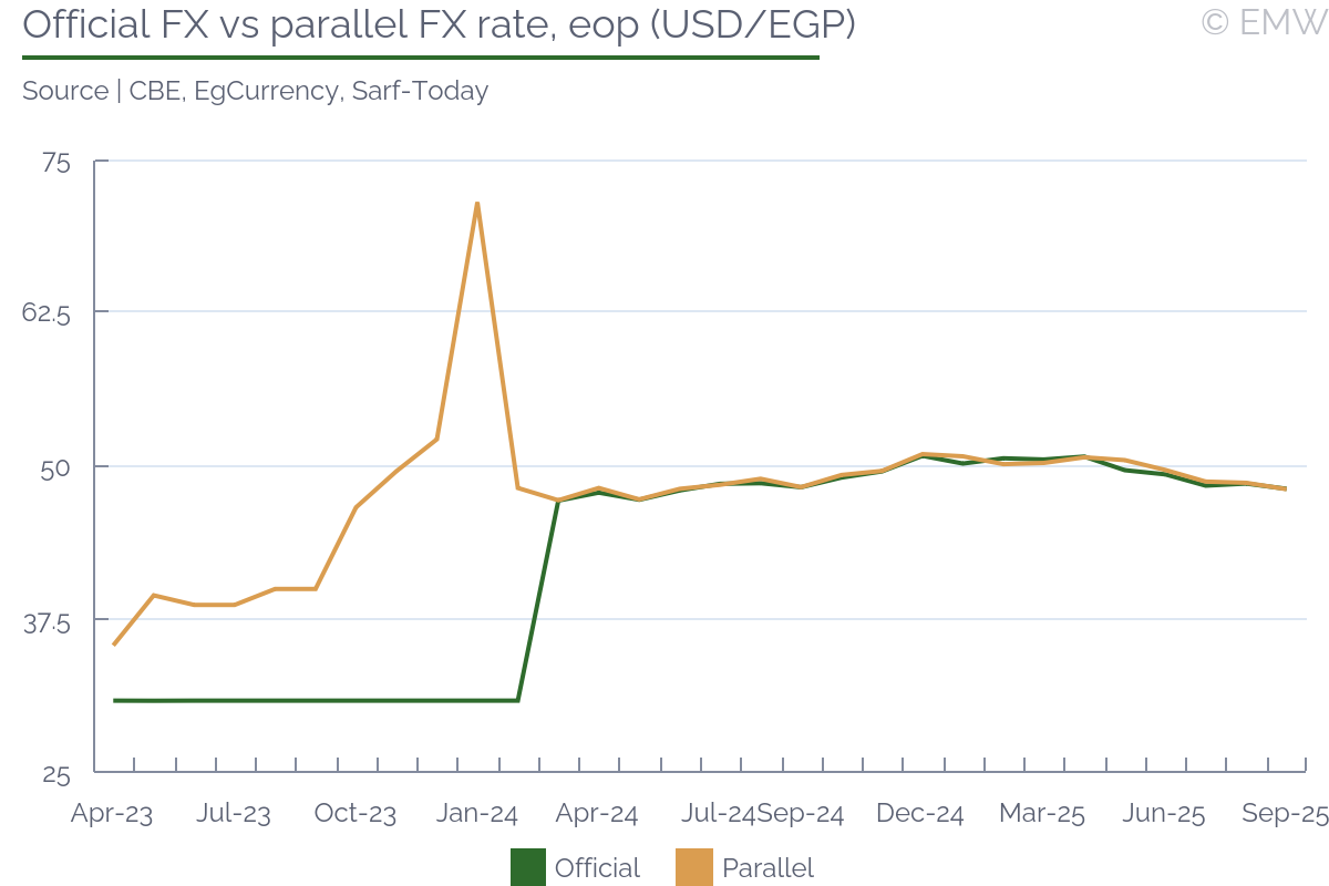 The next MPC meeting is on October 2, and we expect that the committee will continue the easing cycle after delivering an expected 200bps rate cut in August. Following the positive CPI inflation report for August, we are penciling a 100-200bps rate cut, barring any major deterioration in global trade or regional security situation. Despite the surge of portfolio inflows over the past year and a half, Egypt has managed to boost its resilience to external shocks and the latest two major external shocks - the US tariffs announced in early April and the 12-day war between Israel and Iran mid-June - had limited impact on the country. Further, the pound has gained some strength since early July, partly due to capital inflows and partly due to US policy to weaken the US dollar, which will allow the CBE to cut the interest rates. The CBE slightly revised its baseline and alternative annual headline inflation forecasts and now sees inflation averaging 15-16% in 2025, up from its 14-15% forecast, and 11-12% in 2026 (previously: 10-12.5%). Still, headline inflation is expected to remain contained during H2 2025 driven by the cumulative impact of monetary policy tightening and favourable base effects. Consumer inflation is expected to moderate during 2026, albeit at a slower pace given the expected drag effect from the fiscal measures aimed at tightening the fiscal stance. As such, underlying inflation is expected to converge to its historical average over the medium term as inflation expectations improve further. GDP growth recovered in 2024/25, as the FX shortages were eliminated, manufacturing rebounded, FDI inflows picked up, and tourism inflows remain resilient. Remittance inflows soared following the FX reform from March 2024, which supports private consumption. The MPC said that GDP growth should reach its full potential by mid-2026 and the negative output gap is helping to reduce inflationary pressures. Beyond that point of convergence, demand-side inflationary pressures may begin to surface, but the central bank expects that these pressures will remain contained under the current monetary policy stance. Monetary Policy Committee Statement Monetary Policy Committee Meeting Schedule | |||||||||||||||||||||||||||||||||||||||||||||||||||||||||||||||||||||||||||||||||||||||||||||||||||||||||||||||||||||||||||||||||