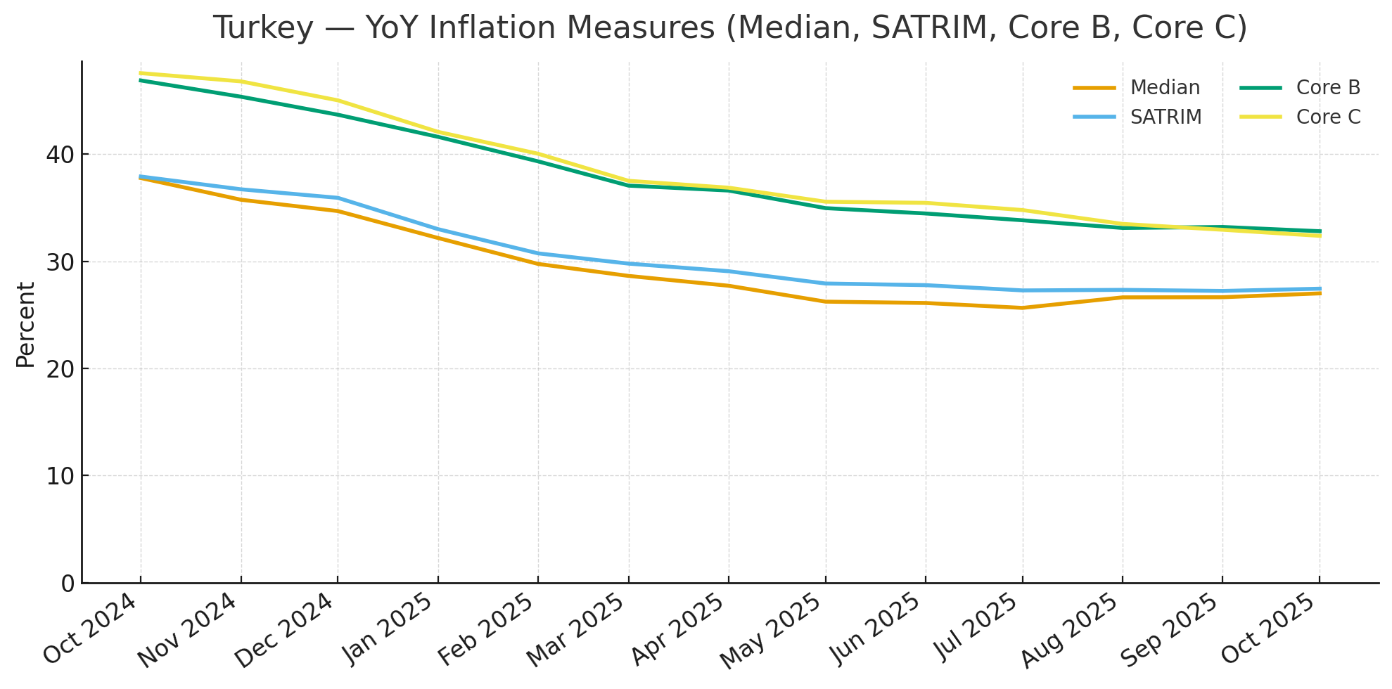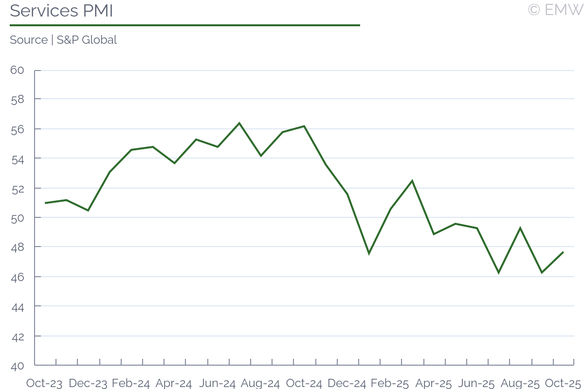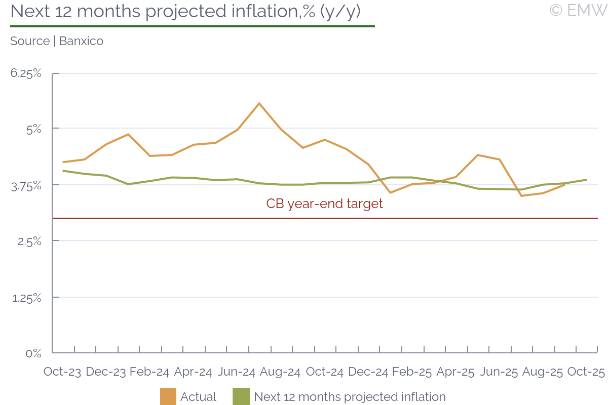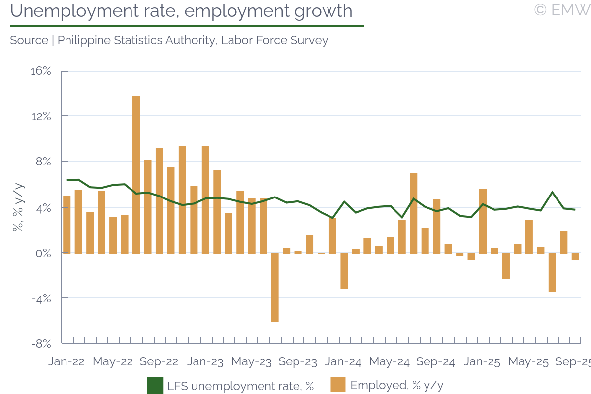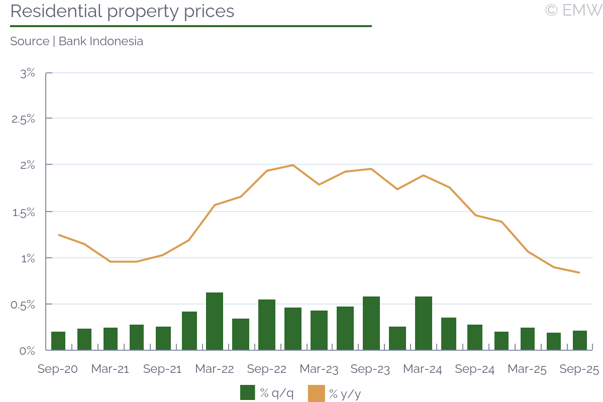 Consumer price inflation eased to 4.9% y/y in October from 5.0% in September, confirming a gradual slowdown in price momentum, data released by stats office INS on Wednesday (Nov 5) showed. The moderation was broad-based, led by softer food and service inflation, though underlying pressures remain persistent. Food inflation slowed to 5.6% y/y, contributing about 1.6pps to the headline. Declines in edible oil prices helped offset still-strong increases in fresh produce and meat, suggesting easing some easing in supply-side constraints. Energy and housing prices were broadly stable, contributing little to overall inflation. The main non-food impulse came from manufactured goods, particularly clothing and household items, where post-sale price normalization drove the 0.7% m/m rise in the headline index. Core inflation edged down to 5.1% y/y, maintaining a narrow lead over headline CPI and highlighting the slow pace of disinflation in unregulated goods and services. While services inflation eased to 4.2% y/y, restaurants and hotels remained among the stronger contributors to overall price growth. Overall, the data suggest inflation is gradually stabilizing near 5%, supported by easing food and service costs but restrained from a faster decline by sticky core and unregulated components. The October reading points to a measured disinflation path rather than a decisive break in underlying price pressures.
