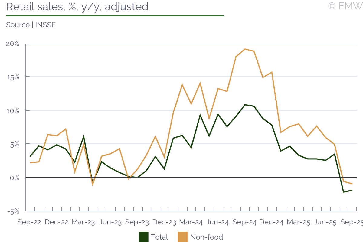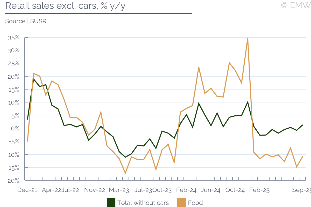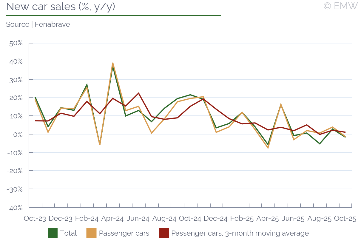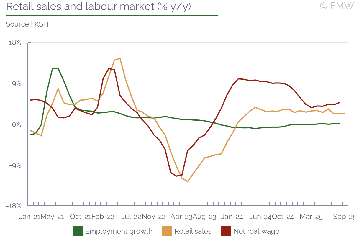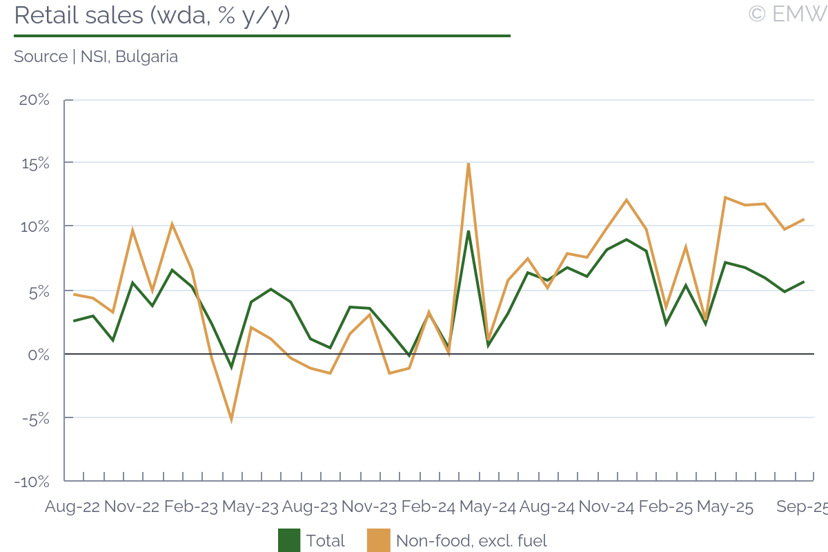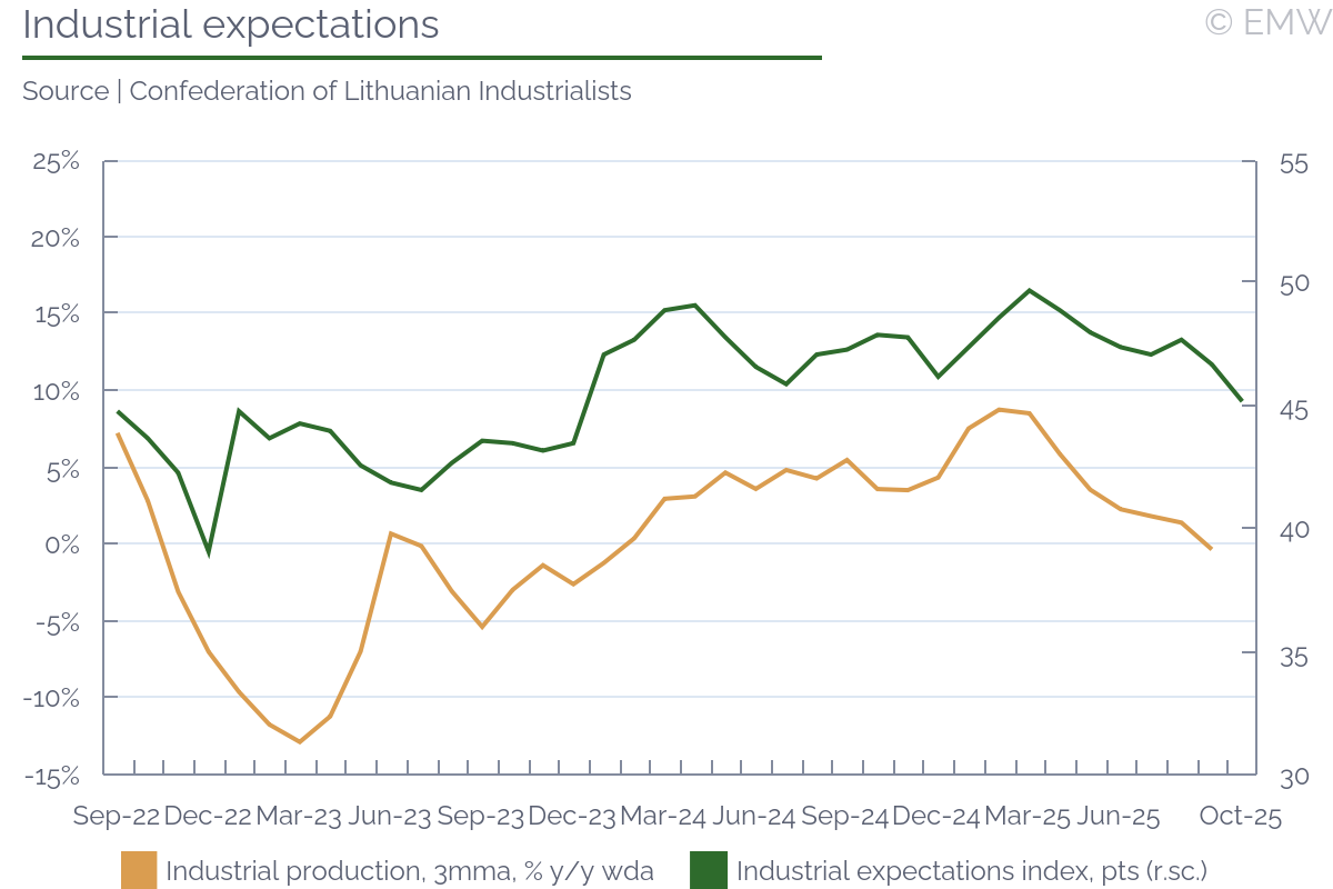 Industrial output rose by 0.4% y/y (wda) in September, swinging back from a 1.3% y/y fall in August, according to figures from the statistical office. The print was stronger than market expectations, which projected a decline of 0.3% y/y. Output also recovered in month-on-month terms, rising by 1.1% m/m (sa) in September, after a 1.1% m/m drop in August. Manufacturing was the sector to push headline production upwards, as it rose by 1.7% y/y in September, and it increased by 2.3% m/m (sa). As expected, the automotive sector worsened, and its output fell by 2.9% y/y in September, faster by 0.7pps m/m. This is largely due to production interruptions in Hyundai, the argument being weak external demand. Other sectors that did not do that well were power generation, where production fell by 9.2% y/y in September after rising by 5.8% y/y in August. Pharmaceutical production deteriorated as well, reporting a fall of 0.4% y/y in September after rising by 7.3% y/y in August. Yet, all this was made up by machinery & equipment and electrical products, as both sectors recovered from a noticeable loss in August to a decent increase in September. Computer & electronics also had an upward contribution to manufacturing growth, but it was mostly a softer decline, from 15.5% y/y in August to 4.5% y/y in September. Manufacturing of transport equipment other than motor vehicles was also on the rise, seeing a 15.3% y/y jump in September. The main issue with this is that we don't quite know how long it will last. Industrial sentiment has been on the rise, and the manufacturing PMI was at a steady level in September, until it sharply deteriorated in October. New orders improved again, rising by 4.4% y/y in September after a 5.1% y/y fall in August. Export orders had the biggest contribution, with a 5.5% y/y increase in September, after a fall of 5.8% y/y in August. By sector, the automotive industry led with new orders, followed by machinery & equipment, electrical, and parts & components. Computer & electronics also contributed, as well as basic metals. On the other end, transport equipment other than motor vehicles saw a major drop in new orders, so it appears the spike seen in September will not continue for long. Our point is that new orders have been quite volatile, and judging from the latest manufacturing PMI print, they will likely deteriorate noticeably in October. Mind that this could be sentiment-related, as the issue with China's export restrictions on rare earths may have impacted orders. Since the issue appears to have been averted, at least for a while, we may see a better performance in November and December. Yet, industrial sales remained unimpressive, falling by 0.8% y/y in September, their third consecutive decline. Given how demand remains weak, employment decline continued, and it fell by 1.6% y/y in September. While it was the softest rate of decline in the past 30 months, job shedding has been going on since mid-2022, without any interruption. Nominal wages rose by 6.7% y/y in September, and there was some upward revision to prints in July (up 6.9% y/y) and August (up 5% y/y). Unfortunately, the statistical office doesn't provide a series for this metric, so we don't know whether past wage growth was revised as well. In any case, nominal wages rose by 6.2% y/y in Q3, up from 4.8% y/y in Q2, their fastest growth in the past 4 quarters. Furthermore, wages in industry rose by 5.6% in January-October, which is likely slower than the national average, but still a sizeable growth rate. We attribute this to persisting shortages of skilled labour. Job shedding has been mostly through low-skilled positions, as well as through not filling in voluntary departures (like retirement, for example). Yet, this is so far industrial producers can afford to go, as they have no guarantee they will be able to find skilled labour if they need to scale up. Automation has been in progress, but it appears its implementation still fails to meet labour demand. All in all, industrial activity has clearly weakened, reporting a growth of only 0.3% y/y in Q3 2025, the weakest this year so far. The same goes for manufacturing output, which rose by only 0.6% y/y in Q3, easing from a 1% y/y growth in Q2. As a result, the robust economic activity seen in Q1-Q3 so far is likely still driven by a combination of household consumption and inventory accumulation. The outlook for domestic industry remains bleak, and downside risks have increased, mostly related to uncertainty around global trade.The automotive sector will likely push down output in October and November as well, though as we have seen there are other sectors that could occasionaly mitigate that impact.