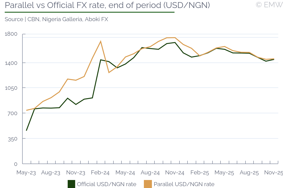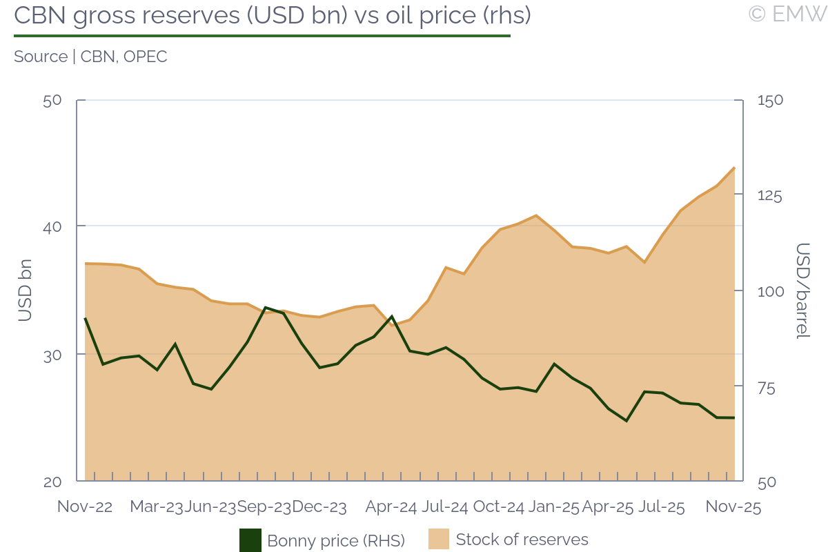 The Trades Union Congress (TUC) strongly criticised the regulator's decision to hike electricity and water tariffs by 10.0 and 15.9%, respectively, as of Jan 1, 2026. In a statement, the union organisation said the hike completely erased the effect of the "paltry" 9% wage hike agreed for next year and demonstrated the insensitivity of the government to the "daily struggle of workers and Ghanaians". Therefore, TUC said the utility tariff increases cannot be accepted unless the government returns to the negotiating table about wages. If this does not happen, it warned, workers will be mobilised to resist their implementation. TUC also said it would hold a press conference on Dec 8 to outline measures to address the tariff hike which it described as "obnoxious". An all-out strike would have significant negative consequences for the economy, but the government will likely seek to avert it and engage unions in a dialogue. It is yet to see whether anything will be agreed in terms of compensation, but any additional pay hike would cost the budget. Still, there might be some room for manoeuvre as the government expects the cash deficit to reach 2.8% of GDP this year, 1pp beyond the revised target of 3.8% thanks to strong revenue and prudent spending. | |||||||||||||||||||||||||||||||||||||||||||||||||||||||||||||||||||||||||||||||||||||||||||||||||||||||||||||||||||||||||||||||||||||||||||||||||||||||||||||||||||||||||||