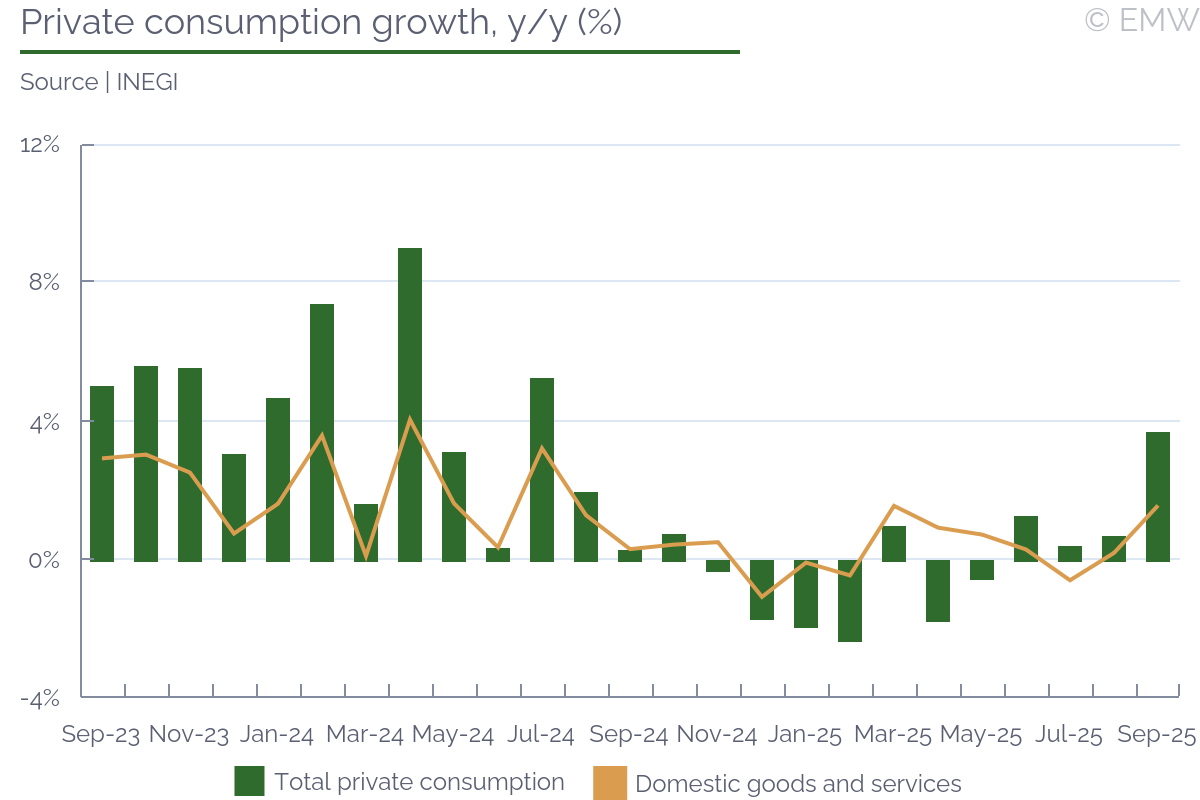 Tax collection rose 3.1% y/y in November, reaching PEN 14.8bn, according to comments from Finance Minister Denisse Miralles cited by official daily Andina on Wed. This is one of the year's highest monthly collections, after January and April, which see seasonal and tax regularization payments. This brought tax revenue growth for Jan-Nov to 11.5% y/y, totaling PEN 159.4bn. She said the strong performance in November was mainly driven by economic activity growth in October and increased tax enforcement and monitoring efforts by the tax office Sunat. Finance Minister Miralles also said that the government is close to meeting the fiscal rule of a 2.2% of GDP deficit by year-end, after two years of missing the target. She added that achieving the target would be 'very positive', not only for the country's credit rating but also for the overall confidence in the economy. The Finance Ministry actually approved an austerity plan at the beginning of Nov, to cut government spending and help meet the fiscal target, which is expected to raise around PEN 1.2bn by the end of the year. Overall, tax revenue has maintained strong momentum in recent months, in line with high global metal prices, sustained demand for copper, and the good pace of economic growth seen so far this year. While this should help narrow the fiscal deficit ahead, it is not yet certain that the government will actually meet this year's fiscal deficit target. Even if the target is achieved this year (or there is only a small deviation), helped by high export levels and record terms of trade, the risk of future shortfalls stays considerable for the coming year, amid a narrow tax base and increased spending pressures in an election year. | |||||||||||||||||||||||||||||||||||||||||||||||||||||||||||||||||||||||||||||||||||||||||||||||||||||||||||||||||||||||||||||||||||||||||||||||||||||||||||||||||||||||||||