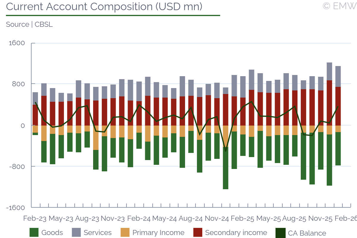 Around 700 acres of forest lands cleared by politicians (Daily Mirror) Over Rs. 213 billion excise duty earned from sale of locally produced liquor in 2024 (Daily Mirror) Sri Lanka should focus more on trade with India to minimise risks (Economy Next) Sri Lanka's central bank could have intervened if rates continued to go up: Governor (Economy Next) Sri Lanka missed golden opportunities to steer country in right direction: President (Economy Next) President sets out 'Rebuilding Sri Lanka' economic vision (Daily FT) IMF-backed unit to anchor evidence-based tax reform (Daily FT) President to attend India AI Impact Summit to be held in Delhi later this month (Ada Derana) | |||||||||||||||||||||||||||||||||||||||||||||||||||||||||||||||||||||||||||||||||||||||||||||||||||||||||||||||||||||||||||||||||||||||||||||||||||||||||||||||||||||||||||||||||||||||||||||||||||||||||||||||||||||||||||||||||||||||||||||||||||||||||||||||||||||||||||||||||||||||||||||||||||||||||||||||||||||||||||||||||||||||||||||||||||||||||||||||||||||||||||||||||||||||||||||||||
